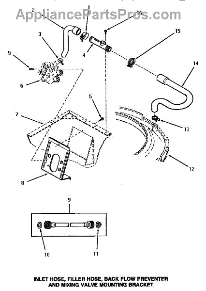 Parts for Amana AWE852: 11 - Inlet / Fill Hose / Back Fl Preventer & Brkt Parts