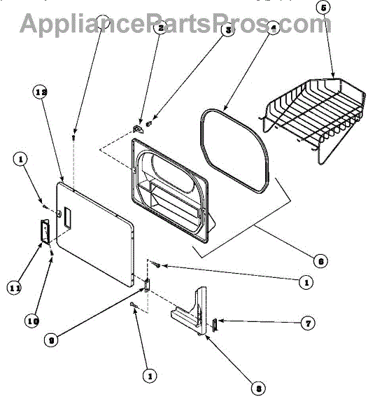Parts for Amana LE8467L2 / PLE8467L2: 11 - Loading Door With Drying Rack Parts