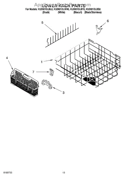 Parts for Kitchenaid KUDI01DLSS0: 11 - Lower Rack Parts