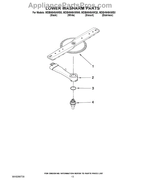 Parts for Maytag MDBH949AWS0: 11 - Lower Washarm Parts
