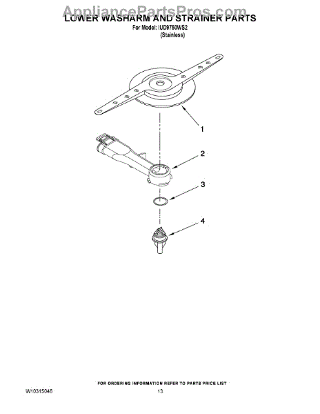Parts for Whirlpool IUD9750WS2: 11 - Lower Washarm And Strainer Parts