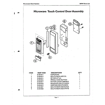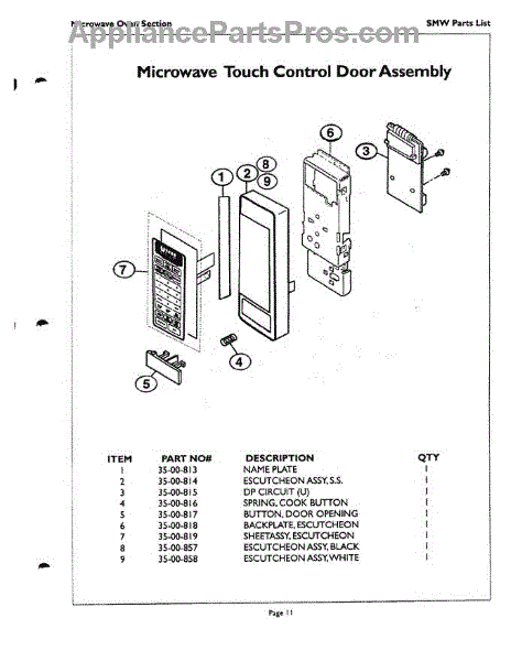 Parts for Thermador SMW272P: 11 - Microwave Touch Control Door Parts