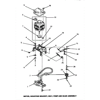 Parts for Amana AWM290W2: 11 - Motor, Mtg Brkt, Belt, Pump & Idler Assy Parts