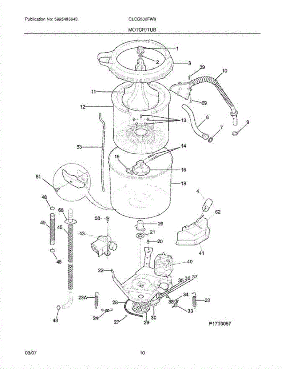 This tub-to-pump hose connects the washer's outer tub to the drain pump, channeling water out during the drain cycle. Replacing a worn hose helps stop leaks and restore consistent draining when the original is cracked or deteriorated.
