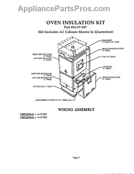 Parts for Thermador CMT227N-01: 11 - Oven Insulation Kit Parts