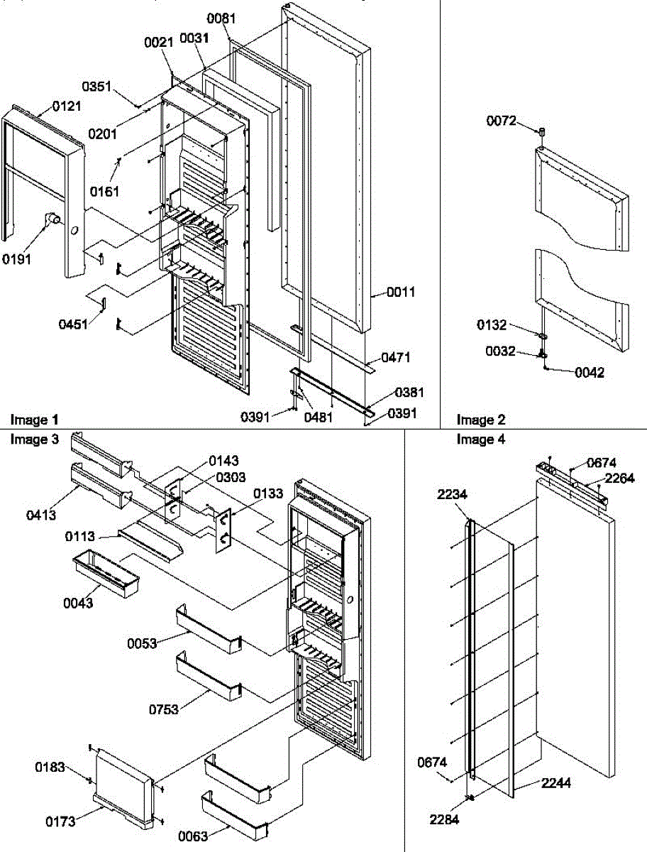 Cam kit for refrigerator door hinges. Includes black and white cams that install at door bottom and hinge. Replace when cracked, broken, or worn.
