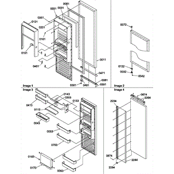 Cam kit for refrigerator door hinges. Includes black and white cams that install at door bottom and hinge. Replace when cracked, broken, or worn.