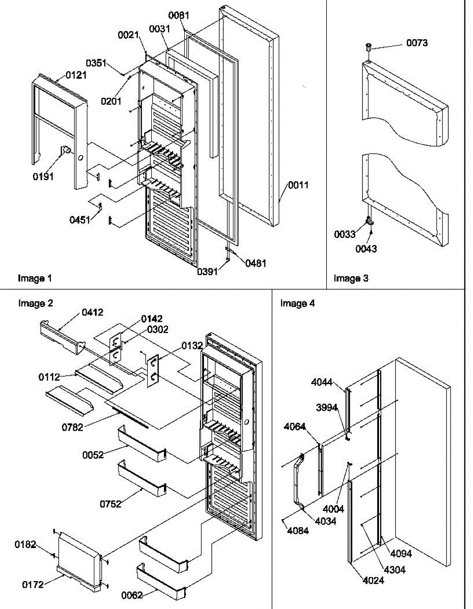 Cam kit for refrigerator door hinges. Includes black and white cams that install at door bottom and hinge. Replace when cracked, broken, or worn.