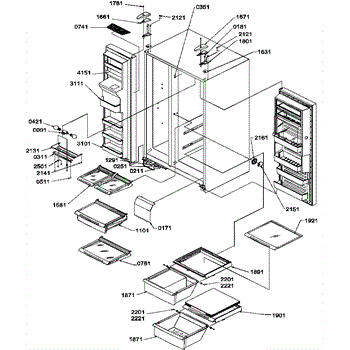 Parts for Amana SRDE27S3E / P1190602W E: 11 - Ref\Fz Shelves, Light, And Hinges Parts