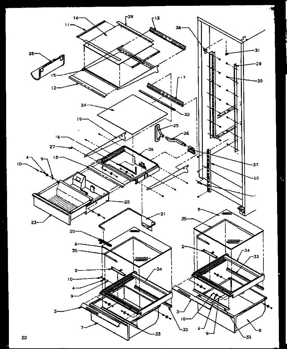 Small mounting screw for refrigerator crisper drawer frame assembly. Replaces missing or stripped screws that secure frame pieces together.