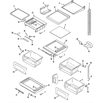 This crisper shelf support is the side-wall bracket that holds the glass shelf/cover above the produce drawers. Replacing a cracked support restores a level shelf and smooth crisper drawer operation.