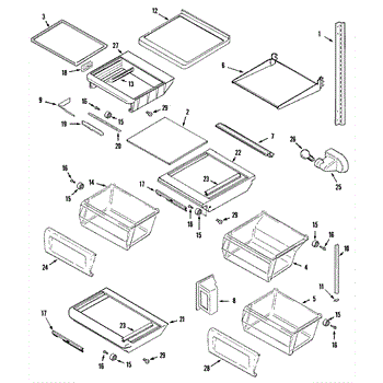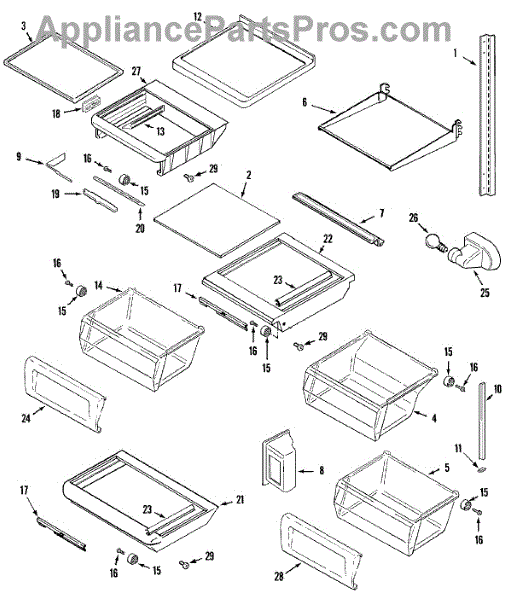 This crisper shelf support is the side-wall bracket that holds the glass shelf/cover above the produce drawers. Replacing a cracked support restores a level shelf and smooth crisper drawer operation.