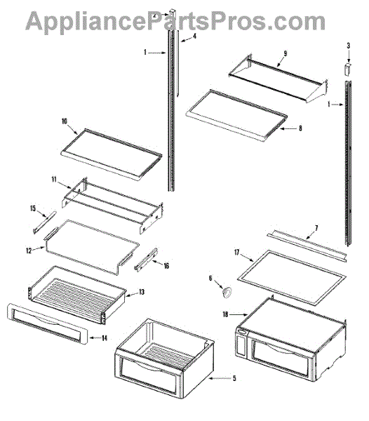 Parts for Jade RJRS4882A: 11 - Shelves & Accessories (Fresh Food) Parts