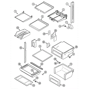 This crisper shelf support is the side-wall bracket that holds the glass shelf/cover above the produce drawers. Replacing a cracked support restores a level shelf and smooth crisper drawer operation.