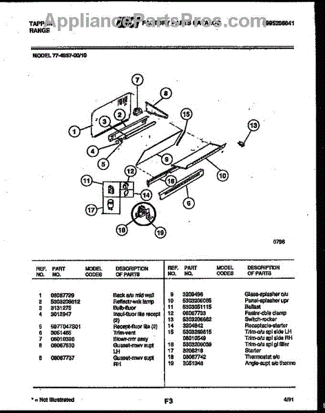 Parts for Frigidaire 77-4957-23-10: 11 - Splasher Control Parts