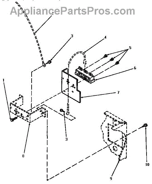 This terminal block provides a secure connection point for the appliance's main power and incoming wiring, restoring reliable electrical contact and preventing loose or arcing connections. What it does: