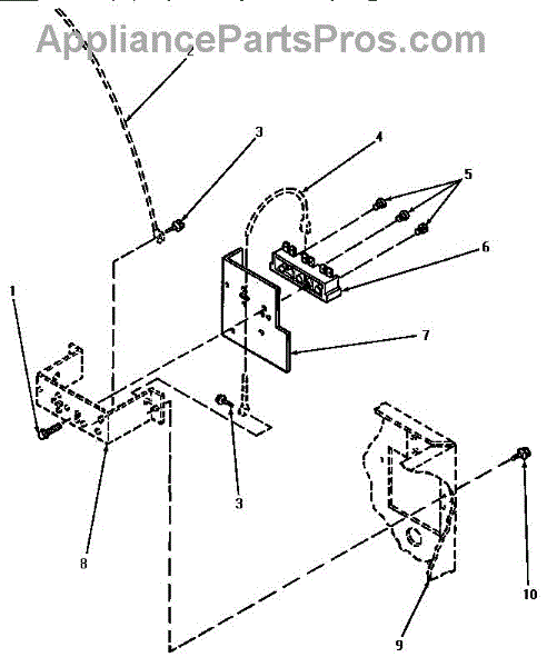 This terminal block provides a secure connection point for the appliance's main power and incoming wiring, restoring reliable electrical contact and preventing loose or arcing connections. What it does: