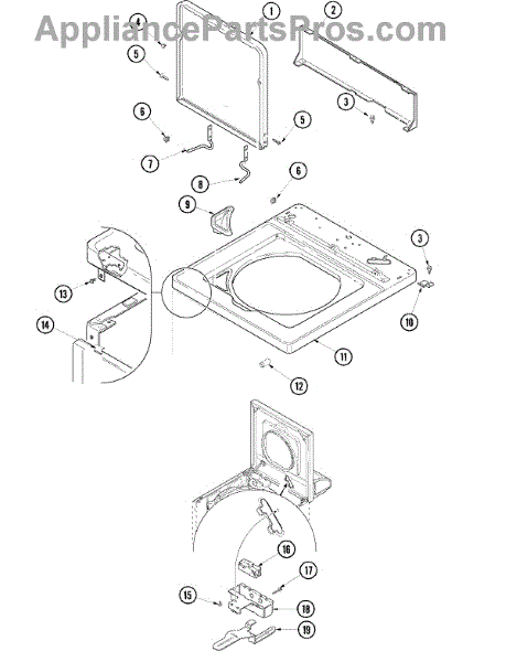 Secures the washer lid to the hinge assembly. Replace if stripped, rusted, or missing. Essential for proper lid alignment and secure closure during use.