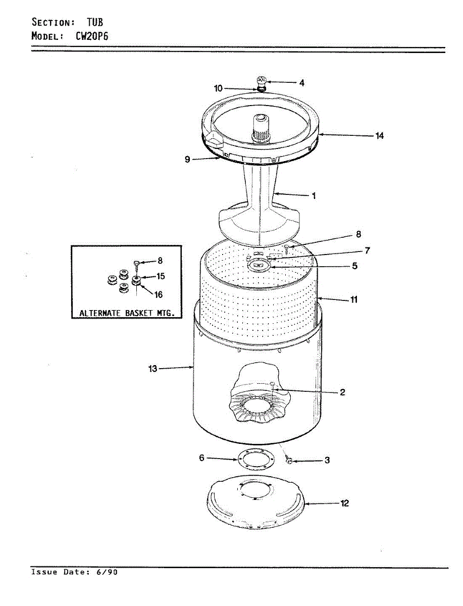 Parts for Crosley CW20P6A: 11 - Tub (Orig. Rev. A-D) Parts