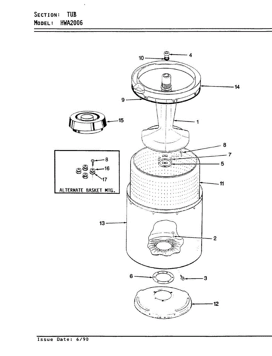 Parts for Hoover HWA2006A: 11 - Tub (Rev. E-F) Parts