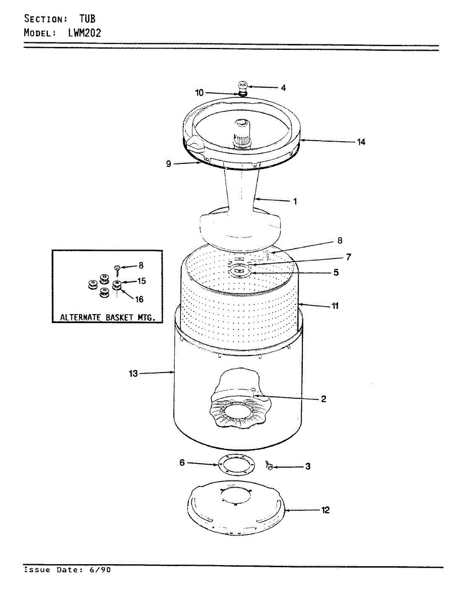 Parts for Norge LWM202H: 11 - Tub (Rev. E-G) Parts