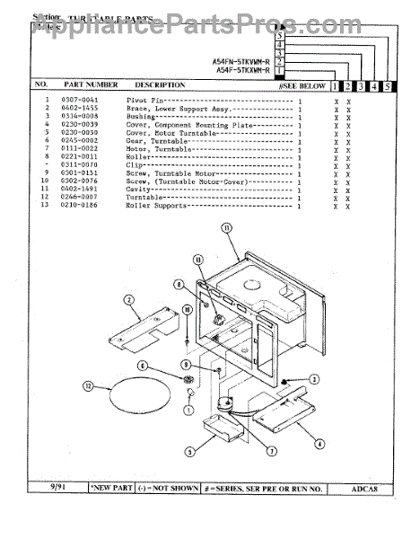 Parts for Admiral A54F-5TKXWM-R: 11 - Turntable Parts