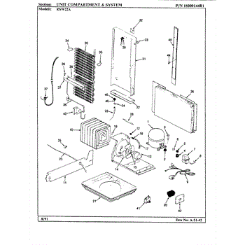 Plastic defrost pan. Evaporator pan hangs from side rails and rests on compressor.
