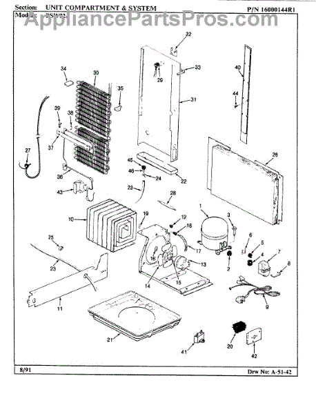 Plastic defrost pan. Evaporator pan hangs from side rails and rests on compressor.