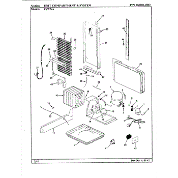 Plastic defrost pan. Evaporator pan hangs from side rails and rests on compressor.