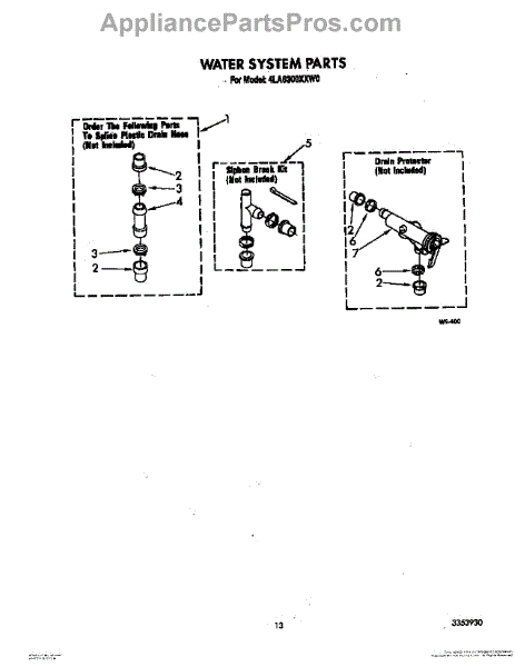 Parts for Whirlpool 4LA6300XXN0: 11 - Water System Parts