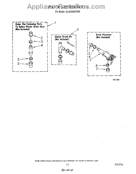 Parts for Whirlpool 6LA6300XTN0: 11 - Water System, Literature And Optional Parts