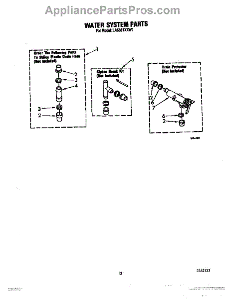 Parts for Whirlpool LA5381XXW0: 11 - Water System Parts
