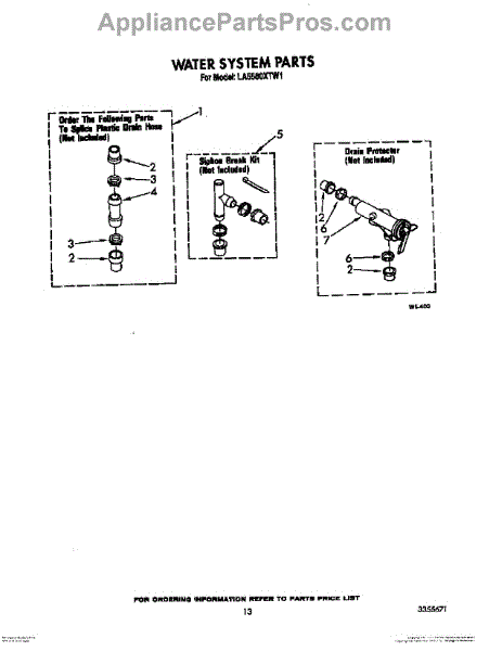Parts for Whirlpool LA5580XTM1: 11 - Water System Parts