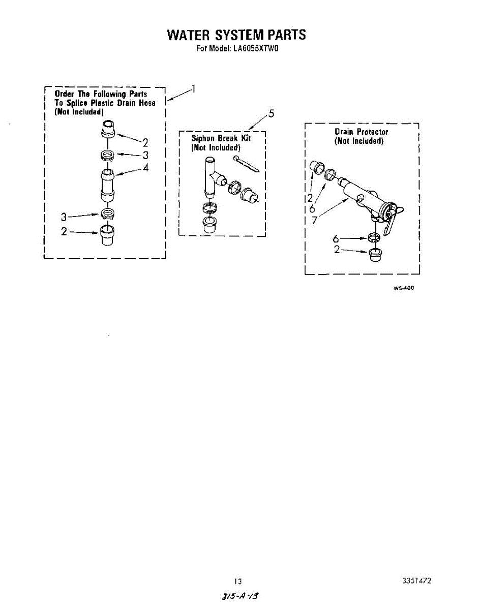 Parts for Whirlpool LA6055XTF0: 11 - Water System Parts