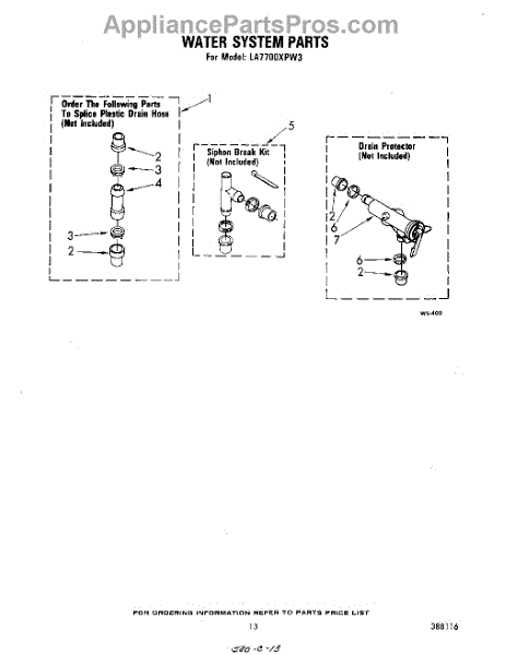 Parts for Whirlpool LA7700XPW3: 11 - Water System Parts
