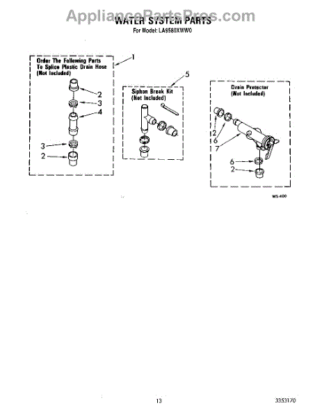 Parts for Whirlpool LA9580XWW0: 11 - Water System Parts