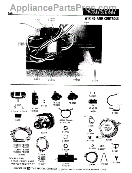 Parts for Maytag DE16CT: 11 - Wiring & Controls Parts