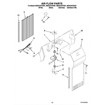 This fan scroll is the molded blower housing that directs airflow from the appliance fan for efficient cooling and ventilation. Replacing a damaged scroll restores proper air path and reduces airflow noise or performance issues. What it does