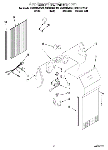 This fan scroll is the molded blower housing that directs airflow from the appliance fan for efficient cooling and ventilation. Replacing a damaged scroll restores proper air path and reduces airflow noise or performance issues. What it does