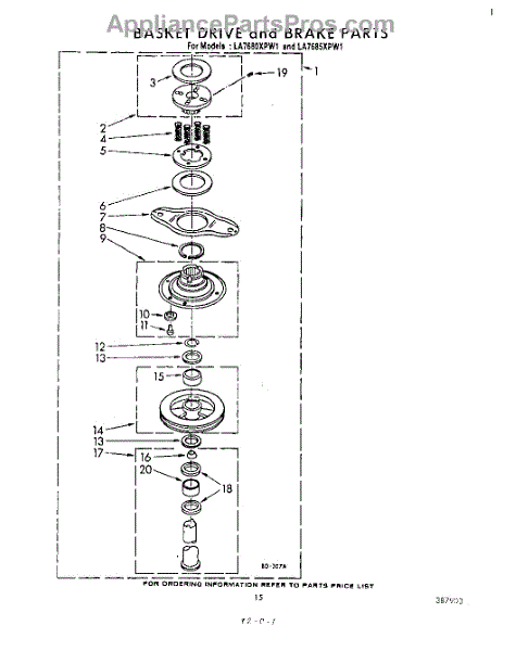 Parts for Whirlpool LA7680XPW1: 12 - Basket Drive And Brake Parts