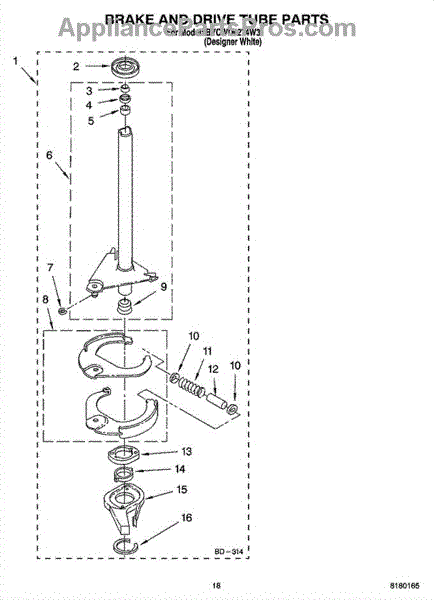 Parts for Whirlpool BYCWD6274W3: 12 - Brake And Drive Tube Parts