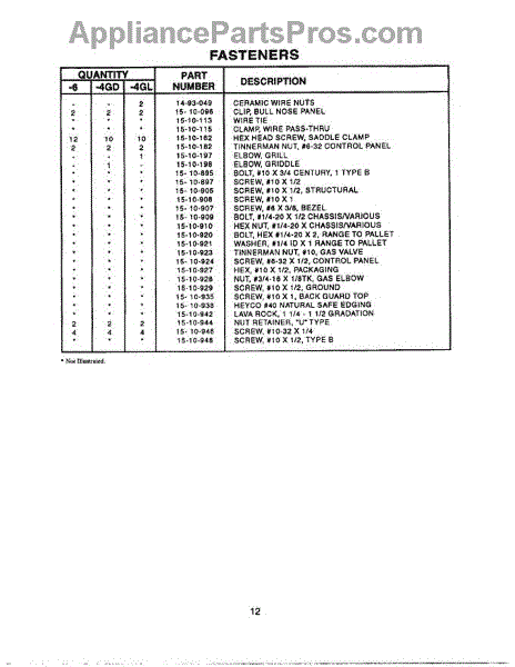 Parts for Thermador PCS364GD: 12 - Fasteners Parts