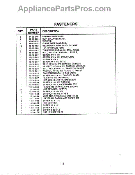 Parts for Thermador PCS484WK: 12 - Fasteners Parts