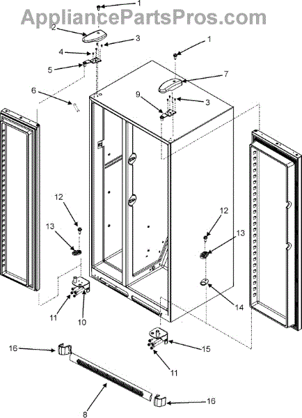Cam kit for refrigerator door hinges. Includes black and white cams that install at door bottom and hinge. Replace when cracked, broken, or worn.