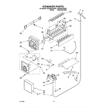 The Ice Container Assembly is an OEM part for Whirlpool refrigerators. This assembly includes the ice bin, where ice is collected, and often features integrated mechanisms or augers for dispensing ice through the refrigerator's door.