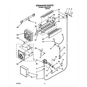 The Ice Container Assembly is an OEM part for Whirlpool refrigerators. This assembly includes the ice bin, where ice is collected, and often features integrated mechanisms or augers for dispensing ice through the refrigerator's door.