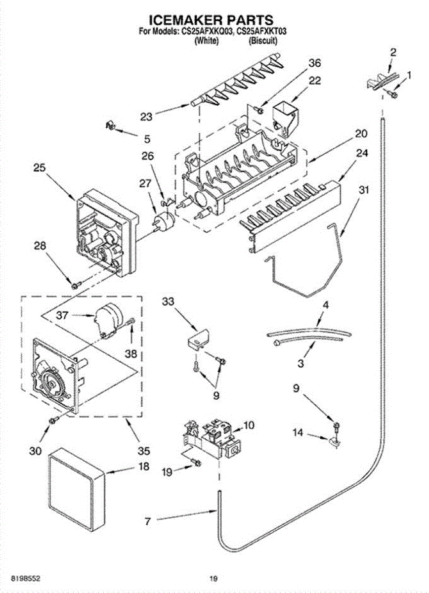 Note: This is the complete horizontal ice dispenser bucket assembly with a crusher. It fits 25 and 27-cubic-foot refrigerator models. For 20 cubic foot models order WP2209778. For 22 cubic foot models order WPW10312301.