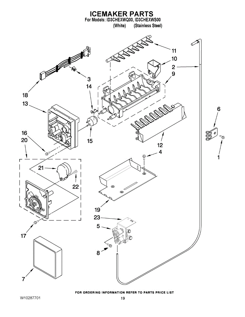 This Icemaker Assembly is an OEM replacement for Whirlpool refrigerators. It is responsible for producing ice cubes, providing you with a convenient and steady supply of ice. Fits models that have the icebucket in the door. The bottom mounting bracket on the old icemaker must be reused.