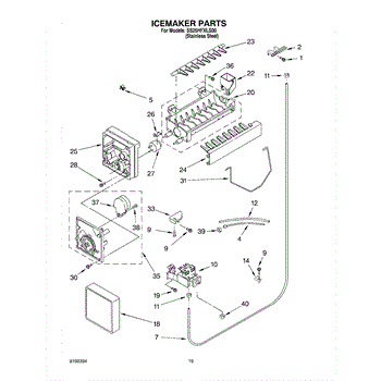 Causes of a bad Ice Container Assembly can include cracks or damage to the bin, which can lead to ice leaks or accumulation in the freezer; wear or malfunction of the dispensing mechanism, affecting its ability to deliver ice.