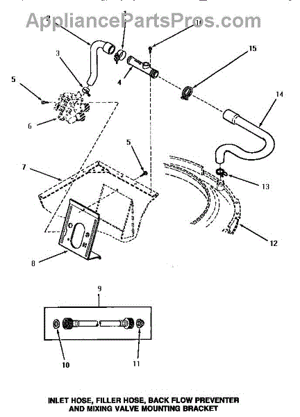 This small strainer sits inside the washer's water inlet valve and screens out sand, rust, and sediment from the supply lines. Replacing a clogged or missing screen restores normal fill flow and helps protect the valve.